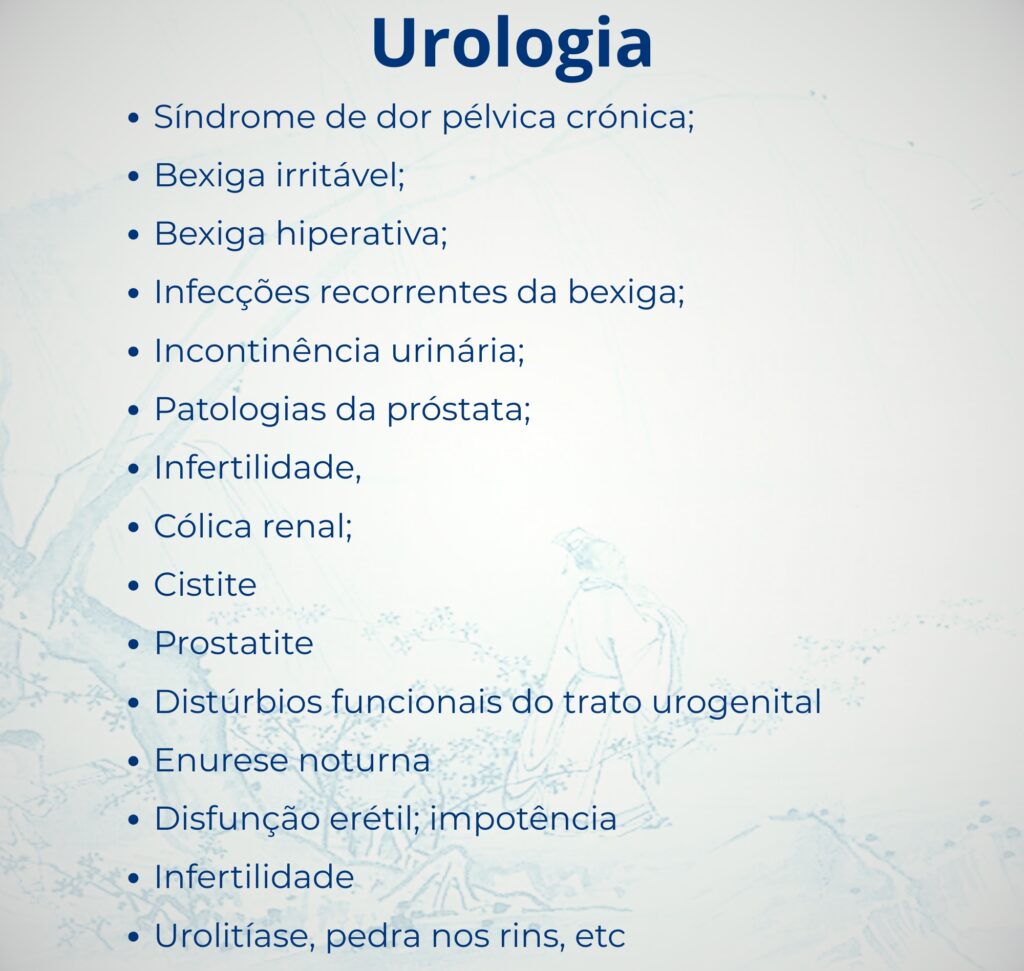 Indicações de ação de MTC: A OMS reconhece, desde 1979, uma série de patologias tratadas por Medicina Tradicional Chinesa. Mais recentemente, em 2019 a mesma instituição incluiu no ICD-11 (CID-11 classificação internacional de doenças – 11) um capítulo dedicado à medicina tradicional chinesa. Pela nossa experiência as queixas e quadros clínicos mais frequentemente tratados pela MTC são: